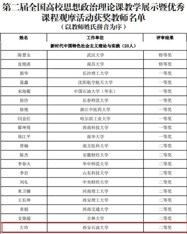 学校教师荣获第二届全国高校思想政治理论课教学展示暨优秀课程观摩活动二等奖
